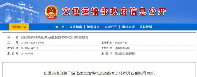 各地交通運輸部門要充分認識道路客運轉型發(fā)展的重要意義,加強統(tǒng)籌協(xié)調,明確責任分工,落實改革舉措。要結合本地實際,制定深化改革推進道路客運轉型升級的實施細則,并及時研究改革過程中的新情況和新問題,為道路客運轉型升級提供保障。