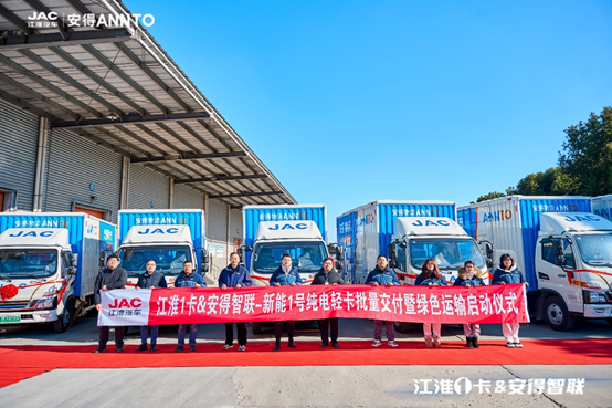 2023年12月22日,“江淮1卡&安得智聯(lián)批量交付暨綠色運輸啟動儀式”在南京隆重召開?;顒蝇F(xiàn)場多輛江淮1卡駿鈴聚寶盆EV5純電輕卡順利交付,江淮1卡與安得智聯(lián)共同積極踐行綠色供應(yīng)鏈發(fā)展與ESG理念,打造城配運輸新標(biāo)桿。2023年12月22日,“江淮1卡&安得智聯(lián)批量交付暨綠色運輸啟動儀式”在南京隆重召開?;顒蝇F(xiàn)場多輛江淮1卡駿鈴聚寶盆EV5純電輕卡順利交付,江淮1卡與安得智聯(lián)共同積極踐行綠色供應(yīng)鏈發(fā)展與ESG理念,打造城配運輸新標(biāo)桿。